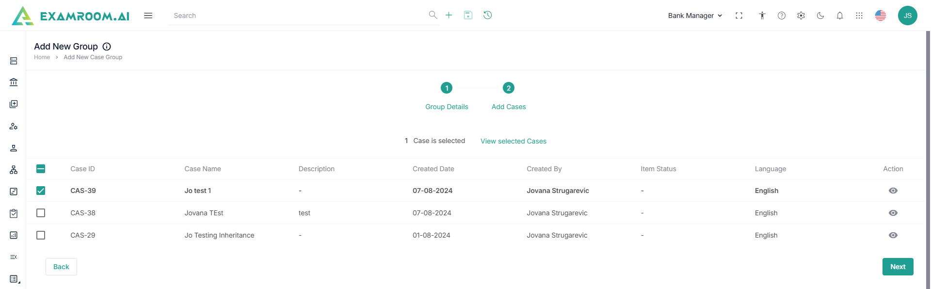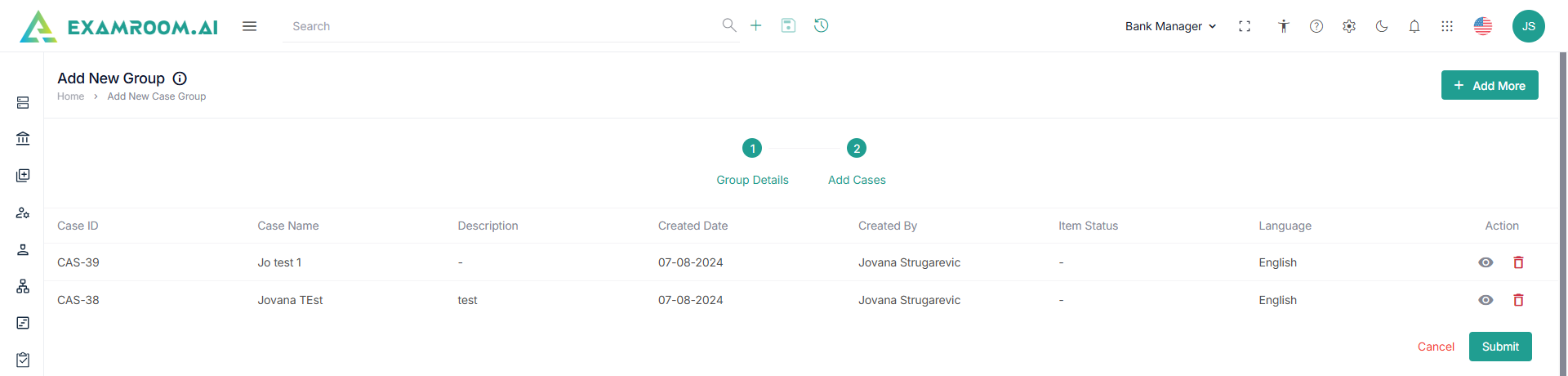 - Click Add More to add more cases in the group.