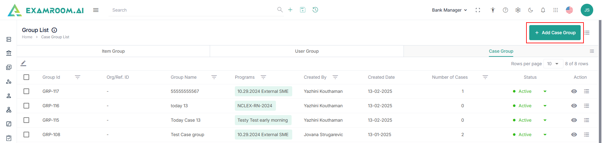 - Select the Program to which the case group needs to be added.