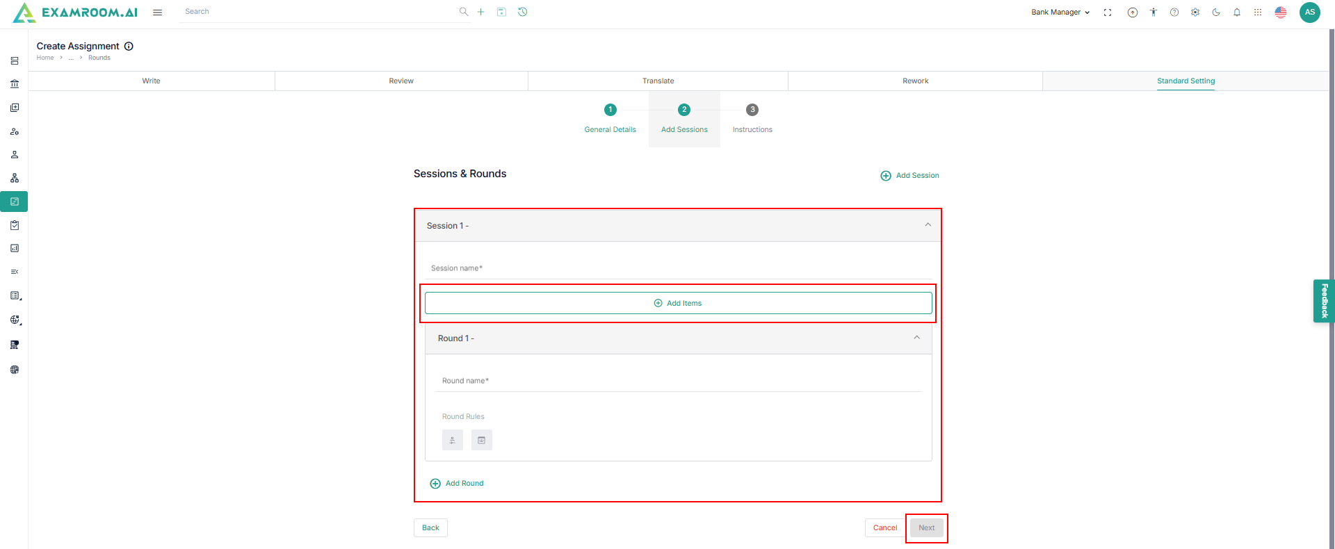 - Enter Round Name to name each round under the session. Multiple rounds can be added using the Add Round option.