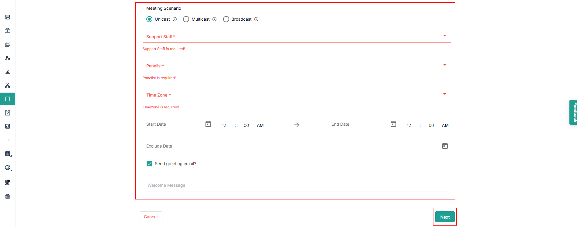 - Select the Time Zone – Set the time zone to schedule the session accurately.