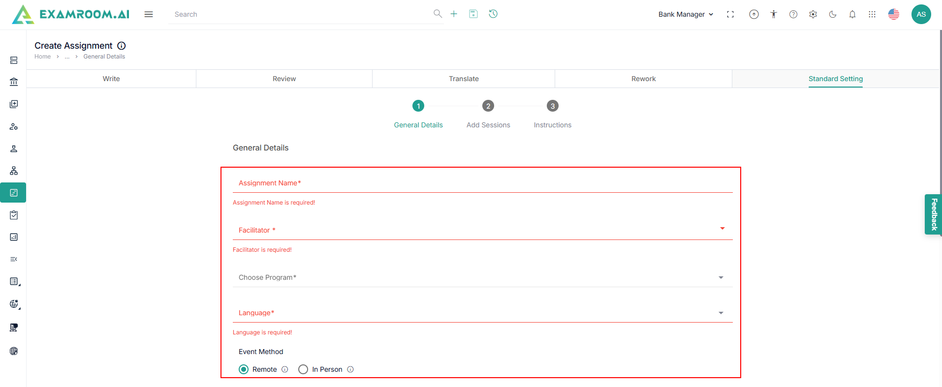 - Choose the Event Method. Select either Remote or In Person based on how the session will be conducted.
