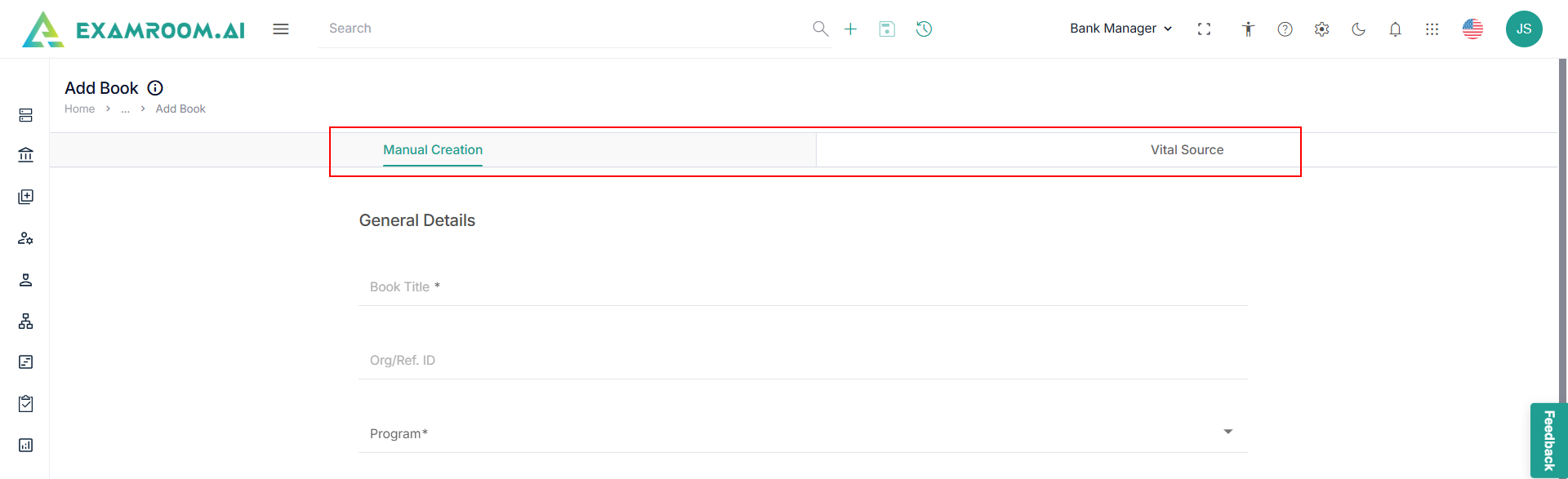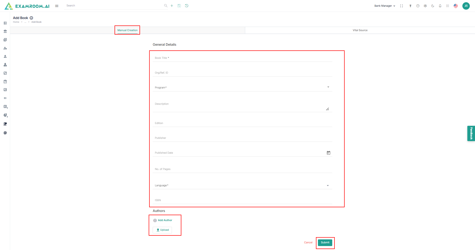 - Enter the Book Title, Reference ID, and Description.
