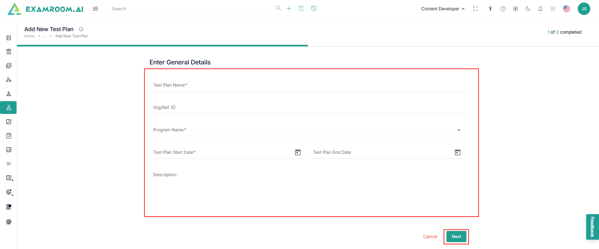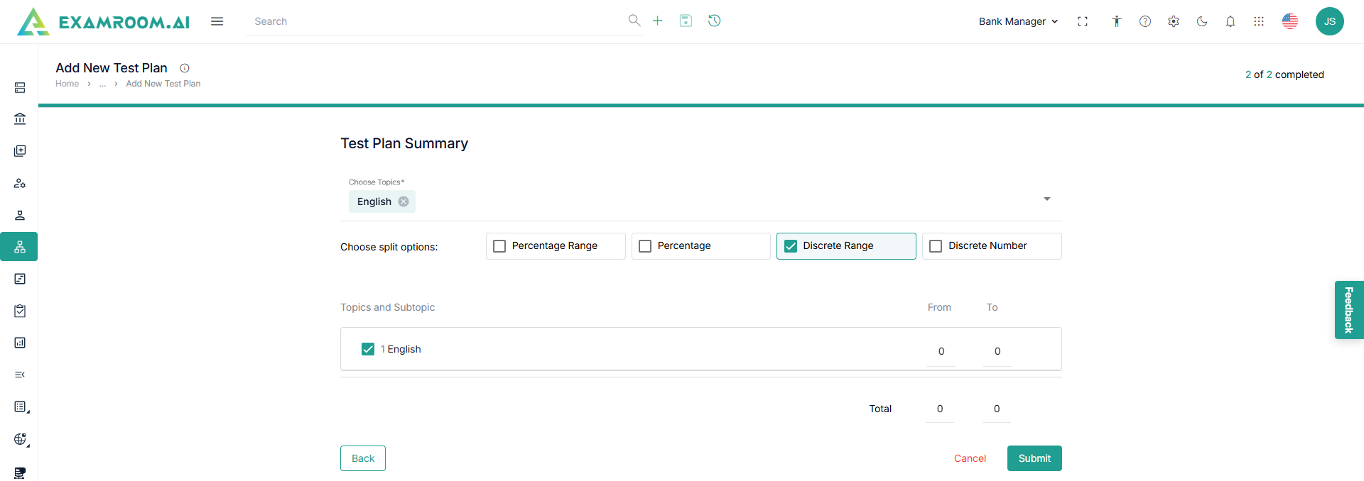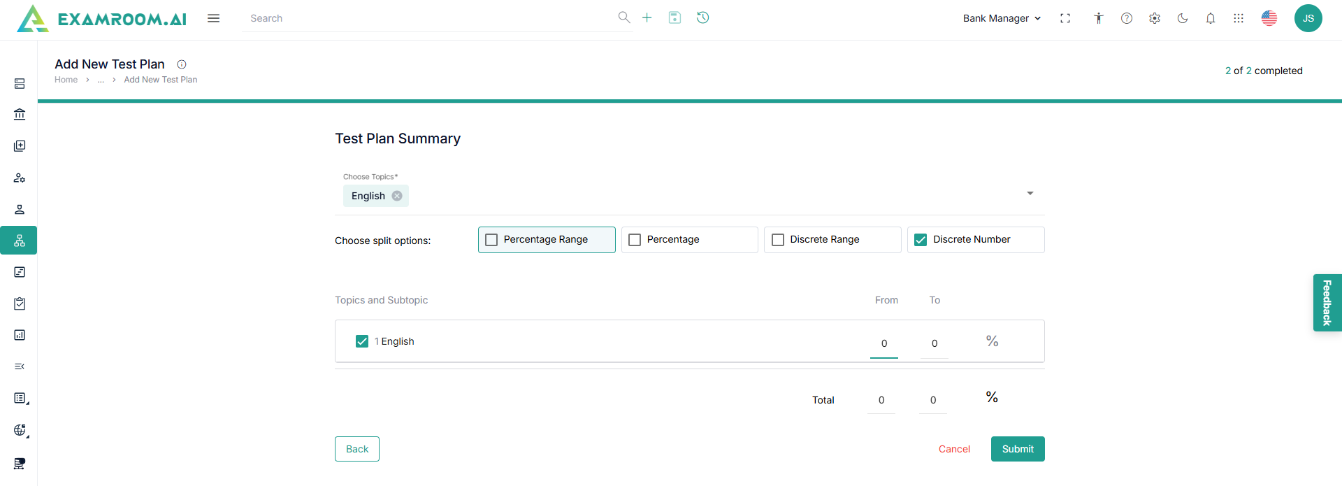 Note: You should have already added the topics for the selected program to choose from the dropdown list. To add topic, refer to Add New Topic. - Check Choose Split Options from the checkboxes.