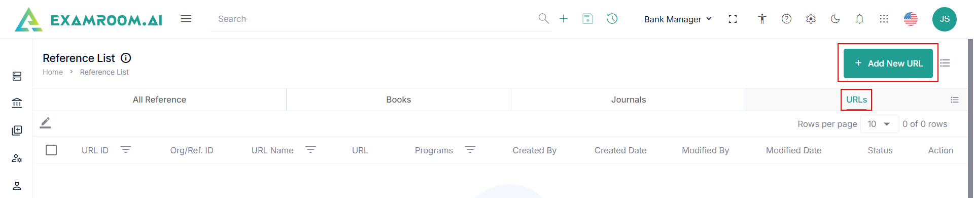 - Click the Add New URL button.