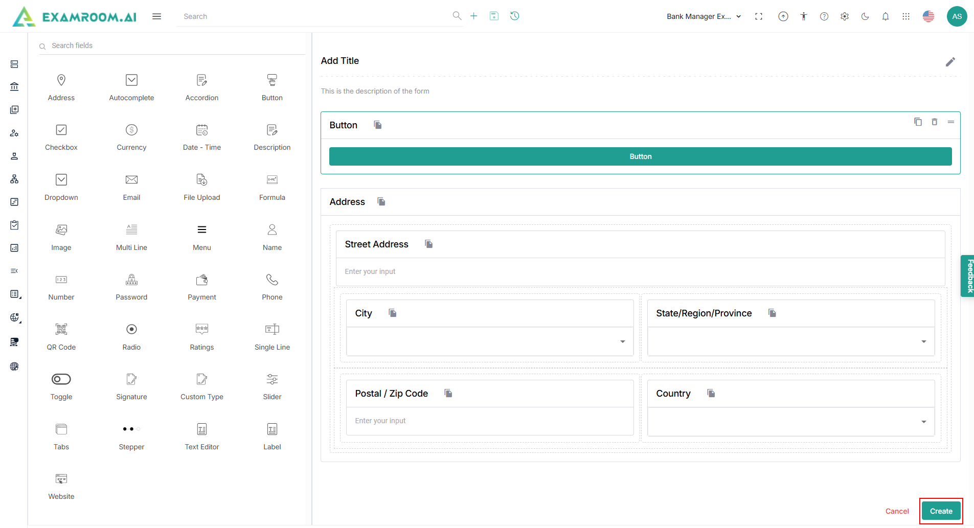 Note: You can select multiple fields and layout to create a form, and you need to set up the configuration details of each field individually. - Click Preview to view the preview of the form.