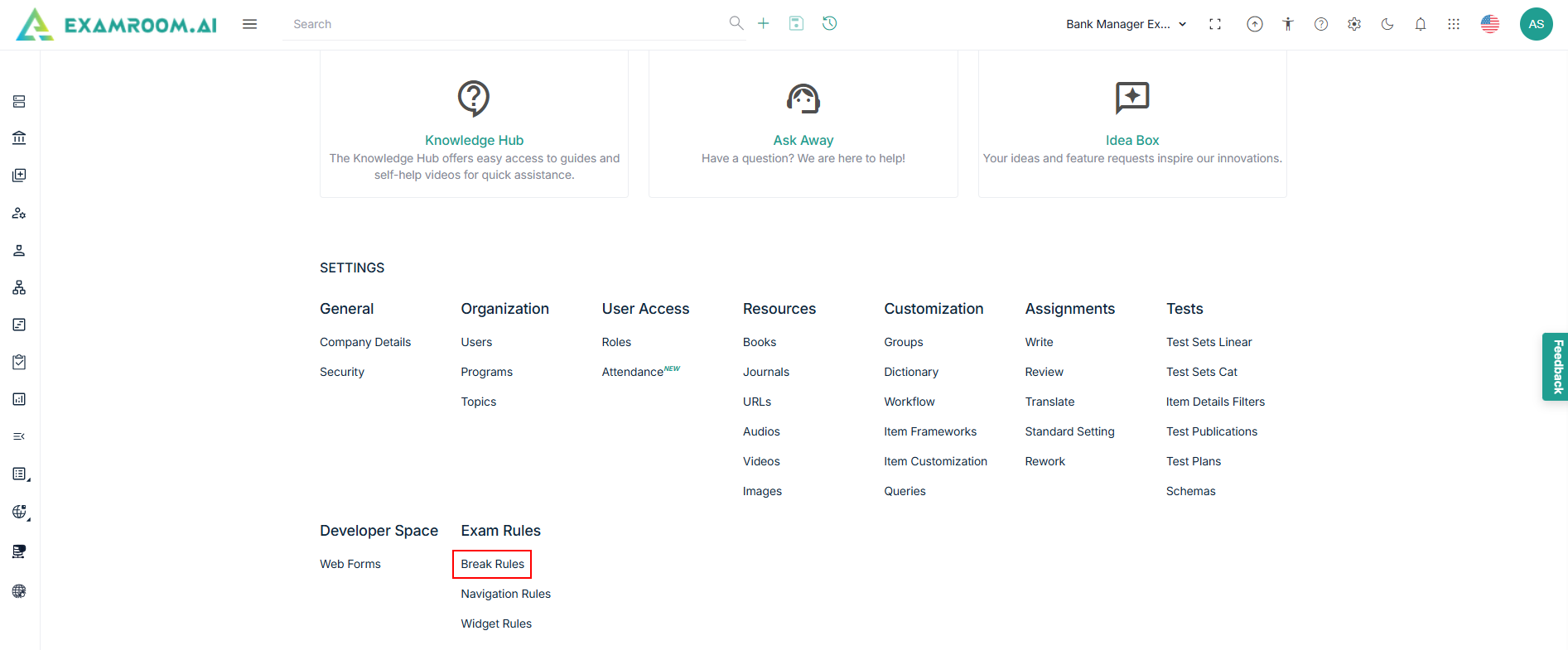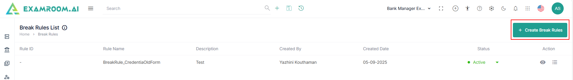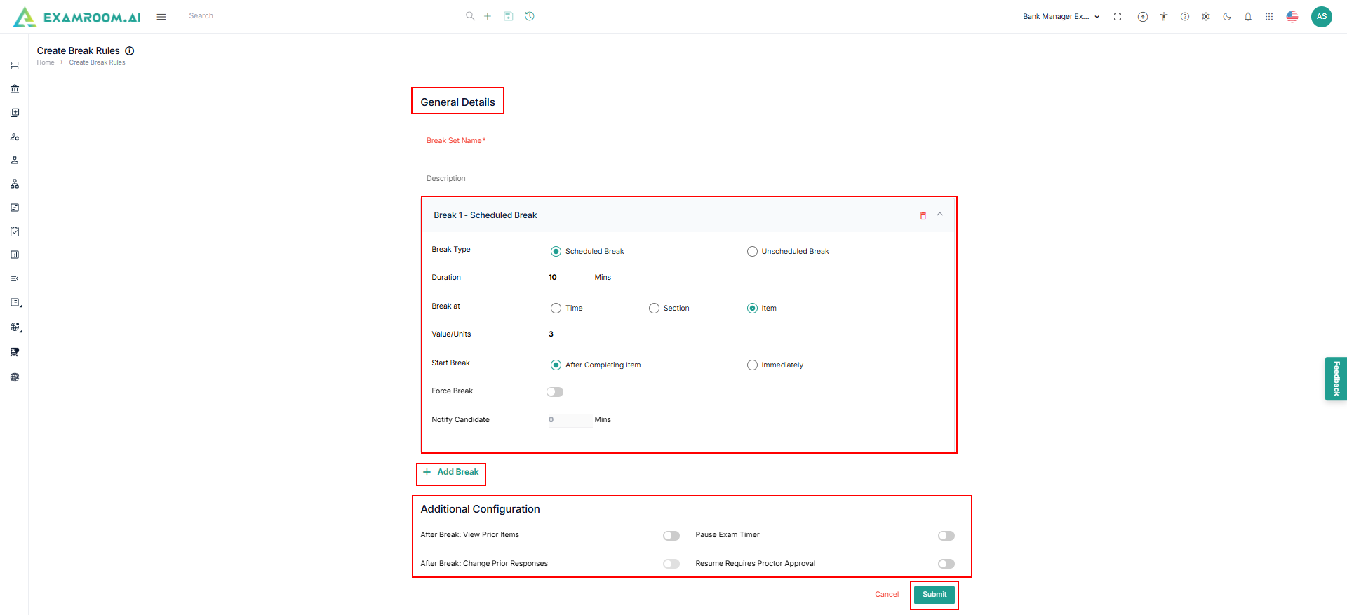 - Click Break Rules under Exam Rule section.