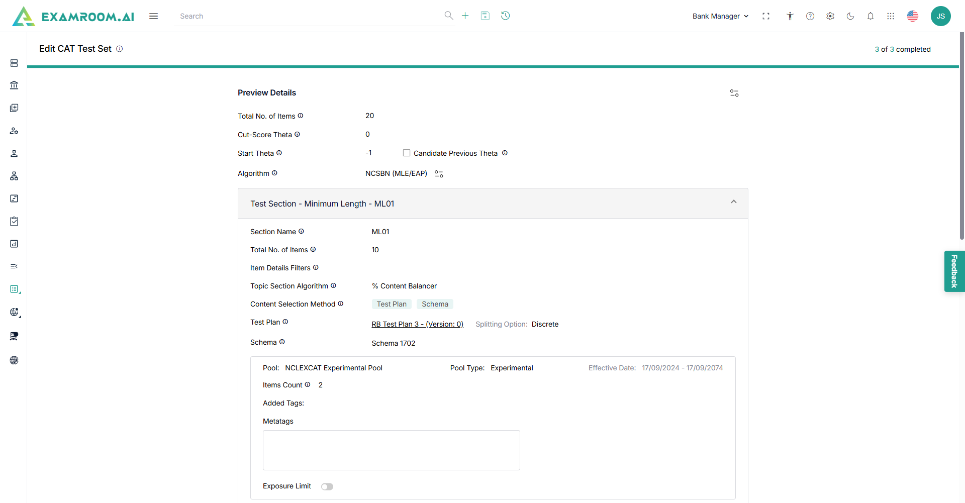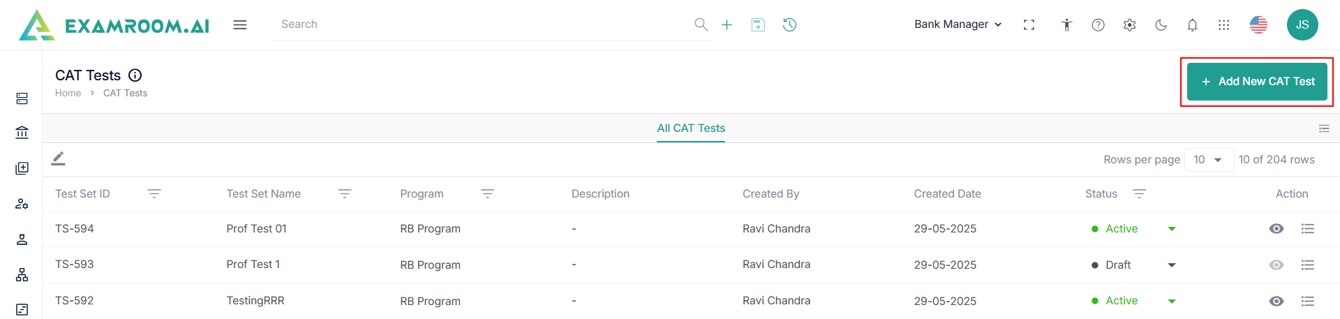 - Navigate to the left navigation menu and select CAT Test Sets.