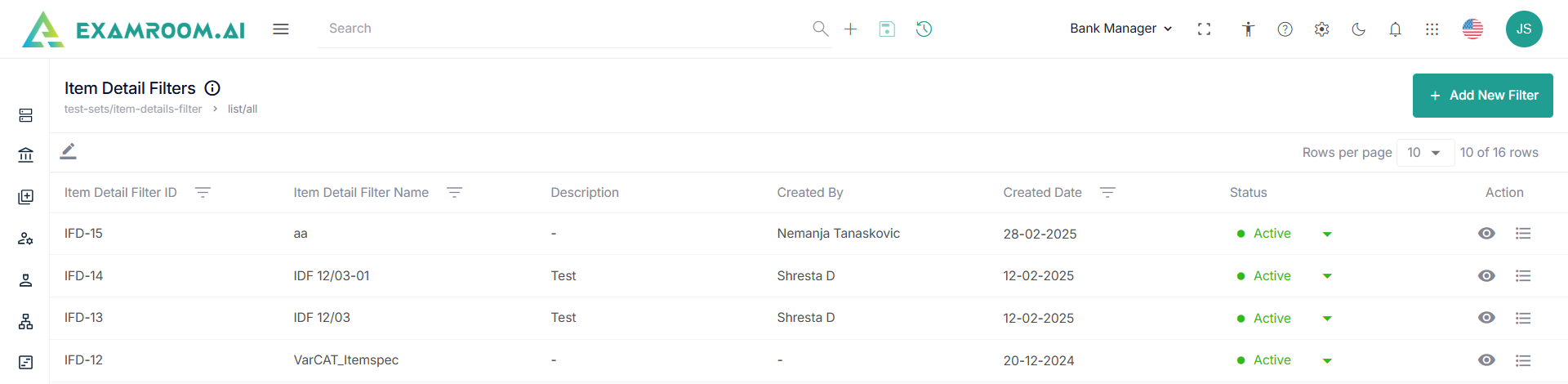 - Created By: Name of the person who created the Item Details Filters.