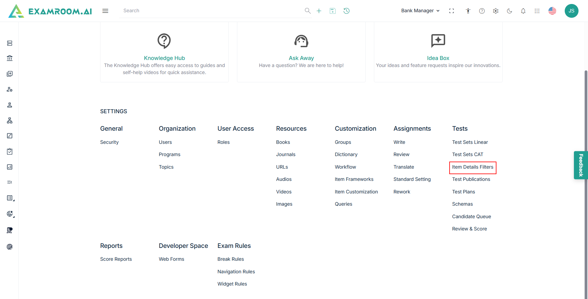 - Click Item Details Filters under the Test section.