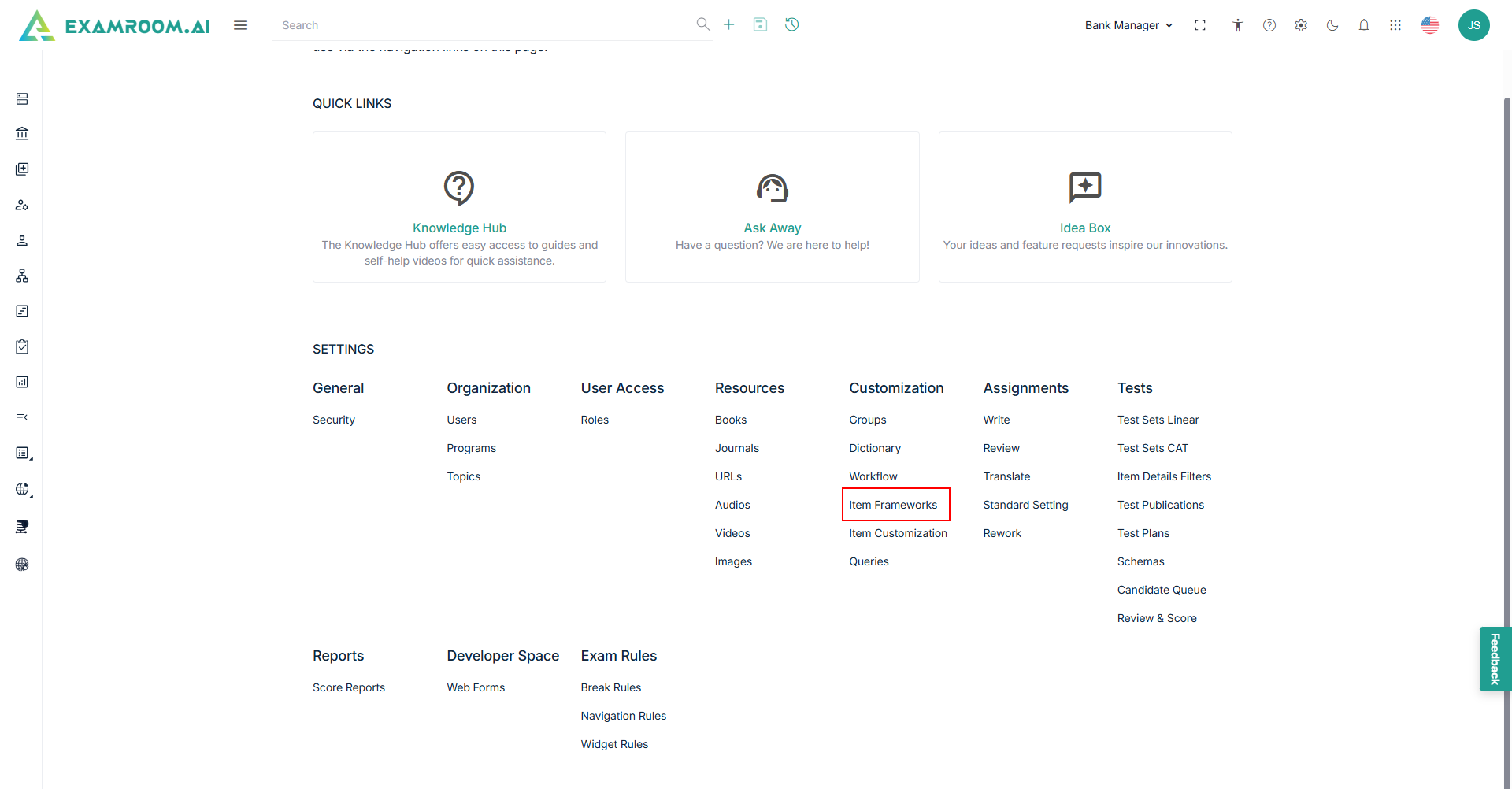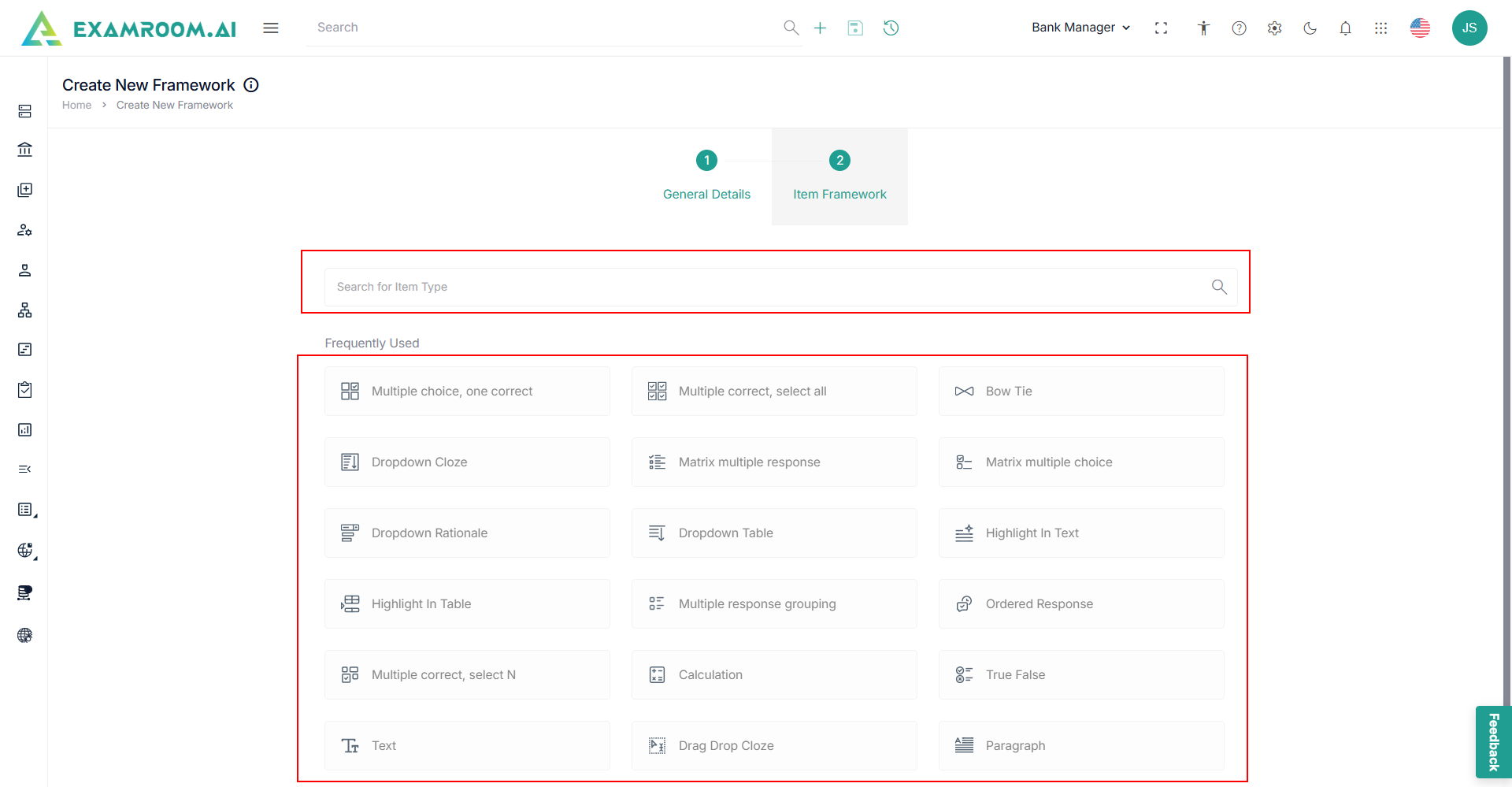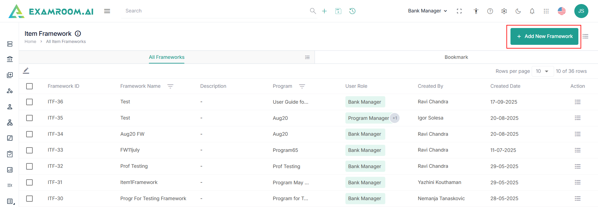 - The Item Framework page is displayed with All Frameworks and Bookmark.