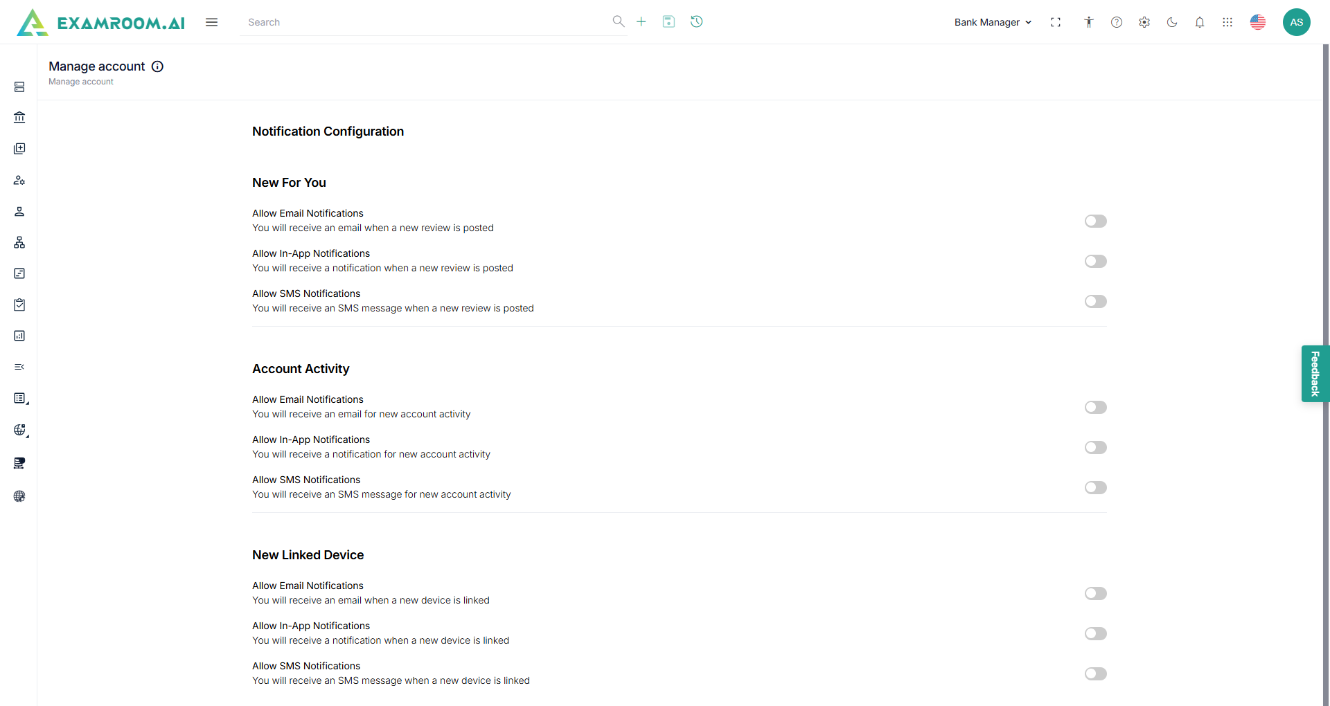 - Click the toggle button in the Account Activity section to enable the following notifications: