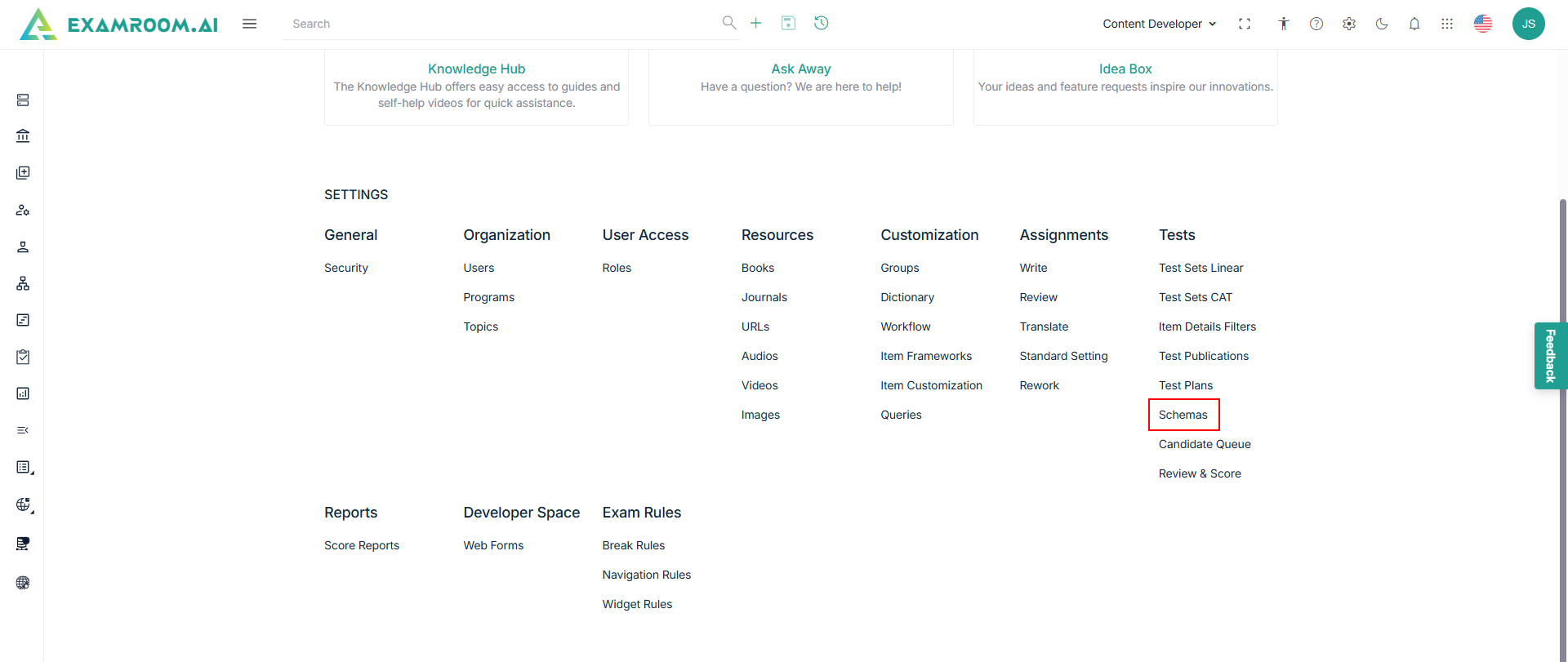 Note: The Schemas List page is displayed. - The following are the table headers: