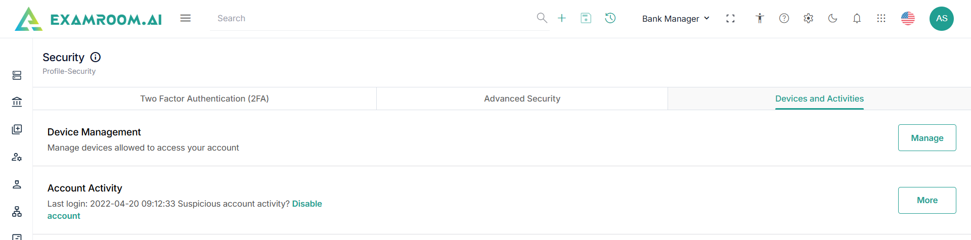 In the Device and Activity section, manage the devices to access your account and track the activity of your account.