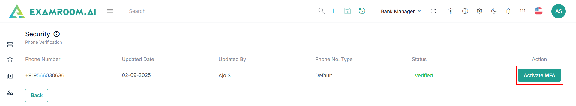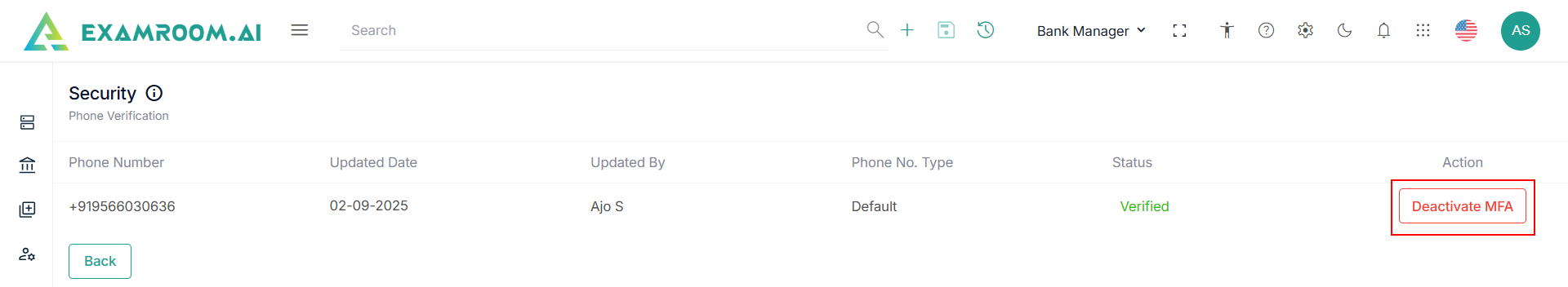Note: Once you click Activate MFA, you will see the option to deactivate it. - To deactivate phone number verification, click Deactivate MFA under the Action column.