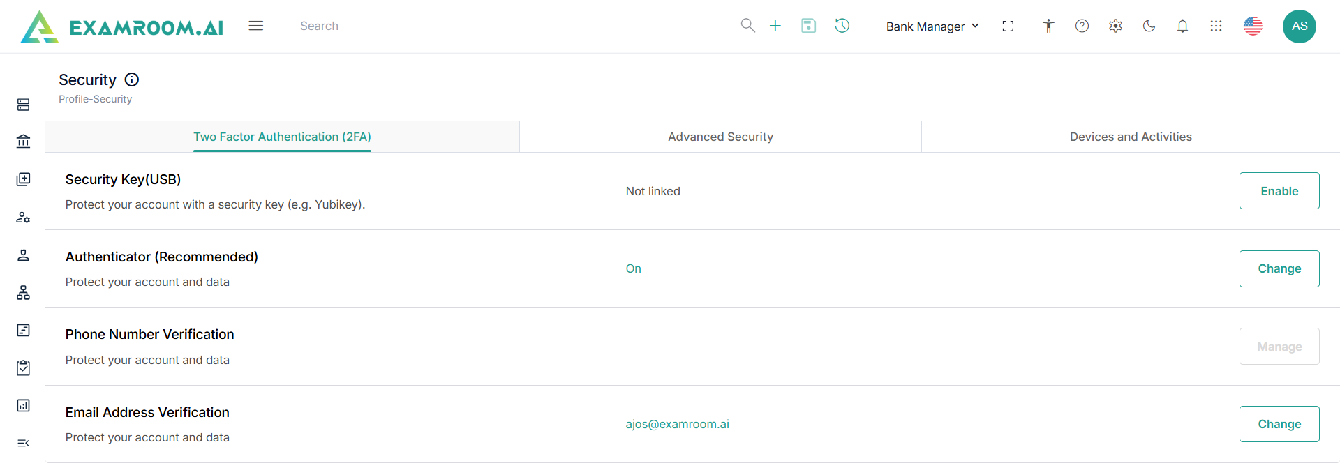 - Security Key (USB): To set up a security key (USB) for 2FA, you must have a security key like Yubikey, Yubico, Google Titan security key, etc. Under the security key, select the Enable button to set up and link the security key to your 2FA process. – Coming Soon.