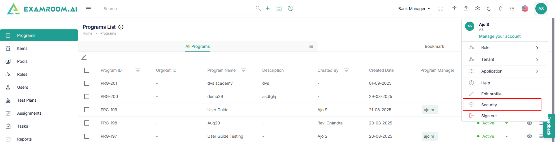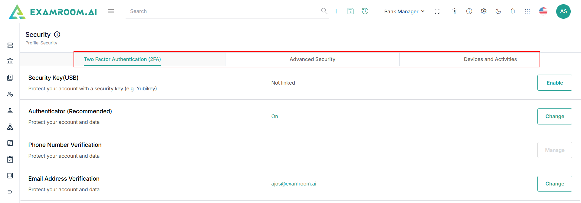 In the security section, you can set up and manage all your login and Multifactored Authentication (MFA) security settings. Additionally, you can modify your profile security, including Two-Factor Authentication (2FA) options, advanced security settings, account activity monitoring, and device management.