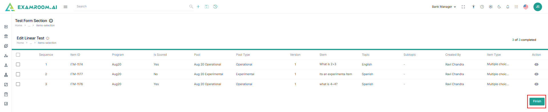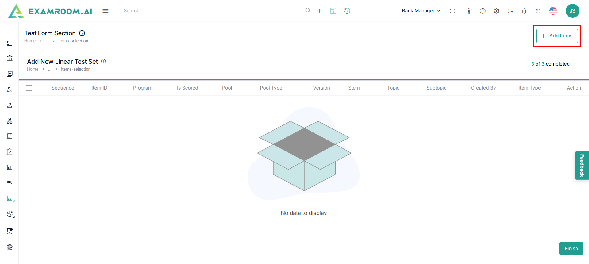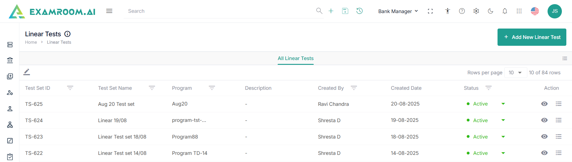 - Navigate to the left navigation menu and select Linear Test Sets.