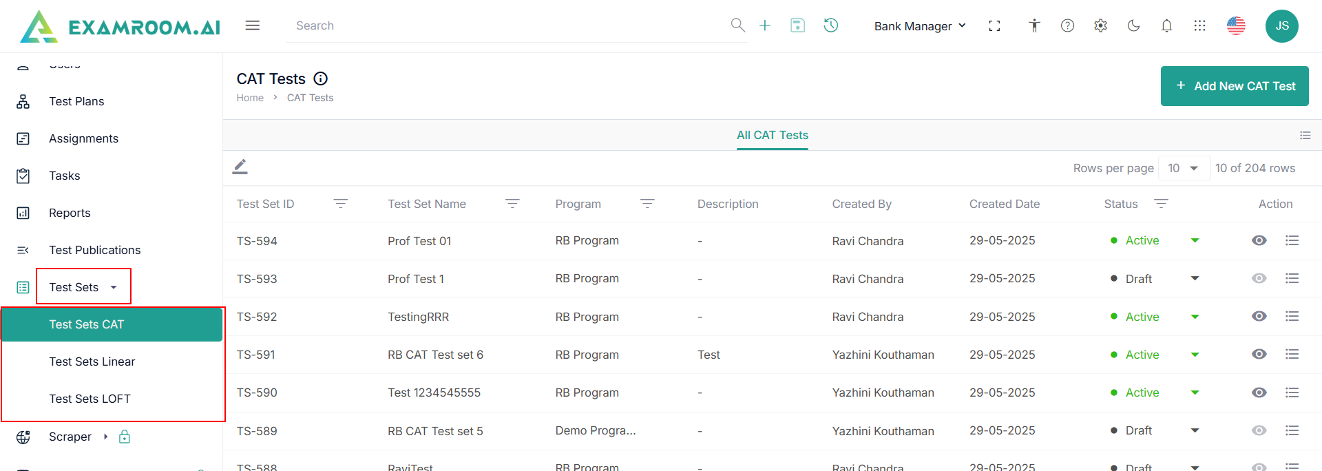 - Created By: Name of the person who created the test set.