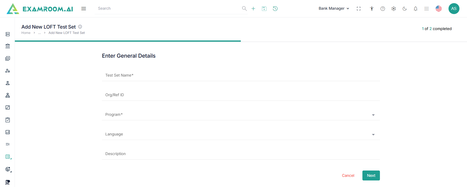 - Enter the following general details in the Add New LOFT Test Set page.