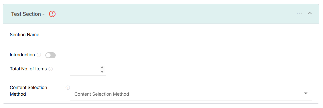 - Enter the Section Name and Total Number of Items.