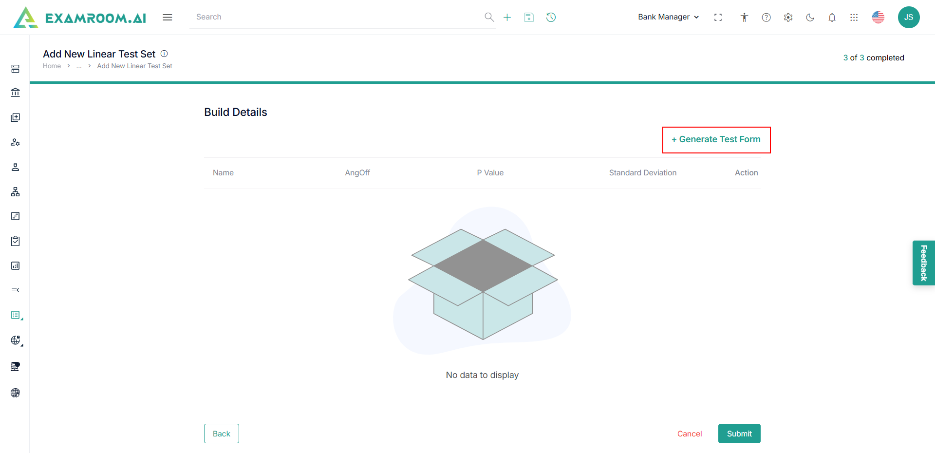 - Click Generate Test Form to add test forms.