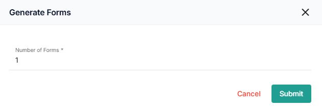 - View the Generate Forms popup and enter the Number of Forms.